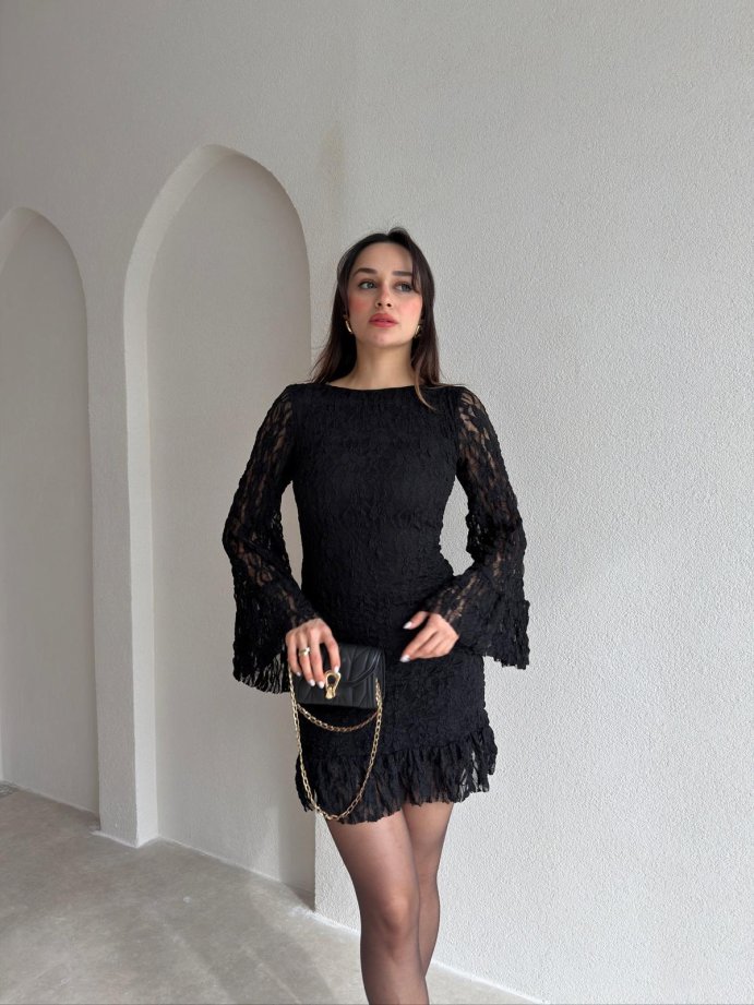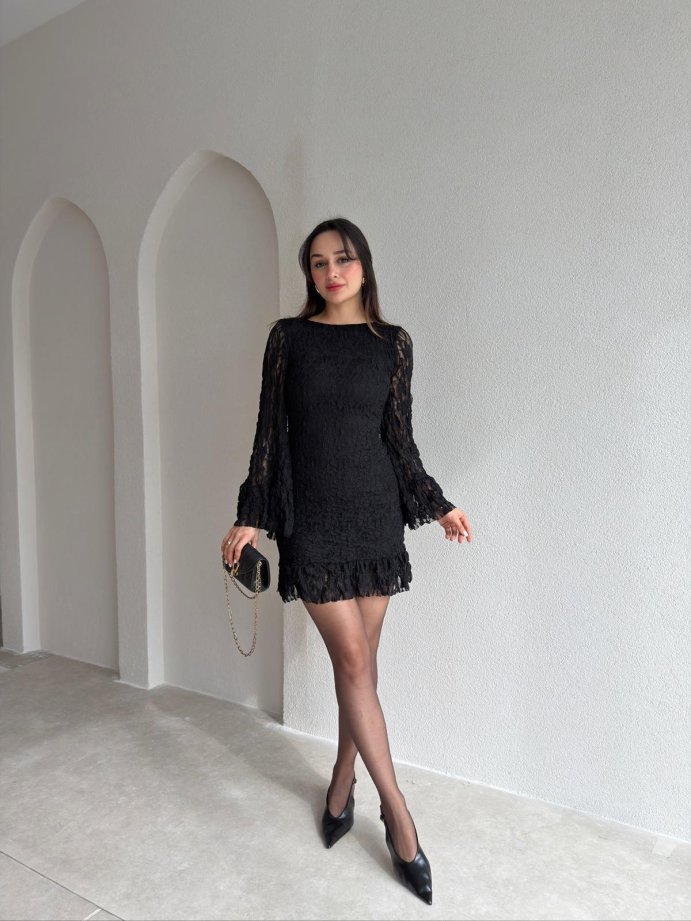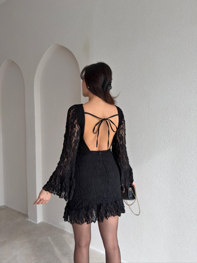 HARBOR Mini Sırt Dekolteli Elbise 8813 - Siyah