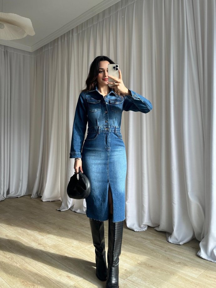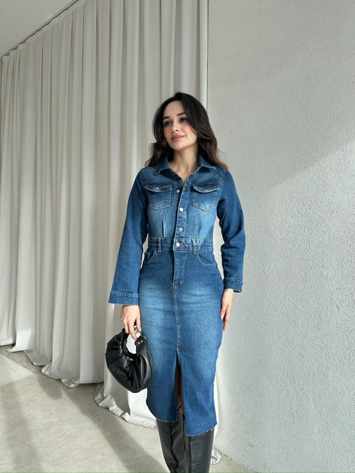 HARVEST Denim Midi Elbise 8834 - Mavi