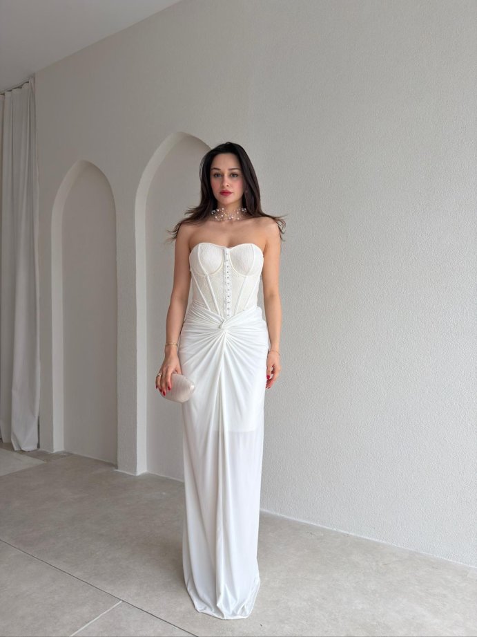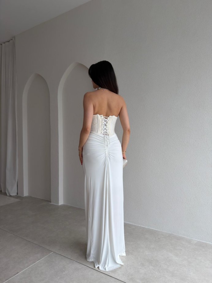 HEROS Korse Detaylı Maxi Elbise 5453 - Ekru
