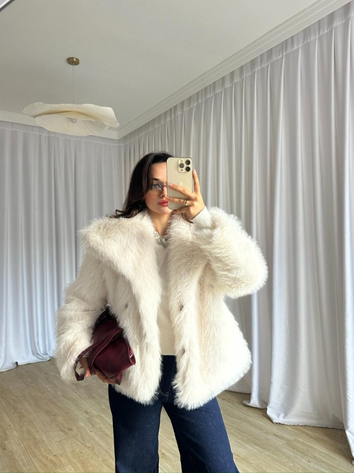- Kürk omuzdan aşağı 56 cm uzunluğundadır.
