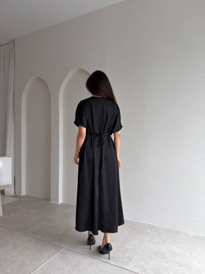 ZİLEY Gül Detaylı Midi Elbise 8117 - Siyah