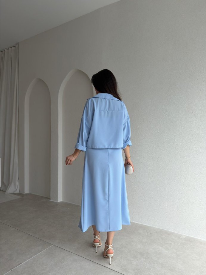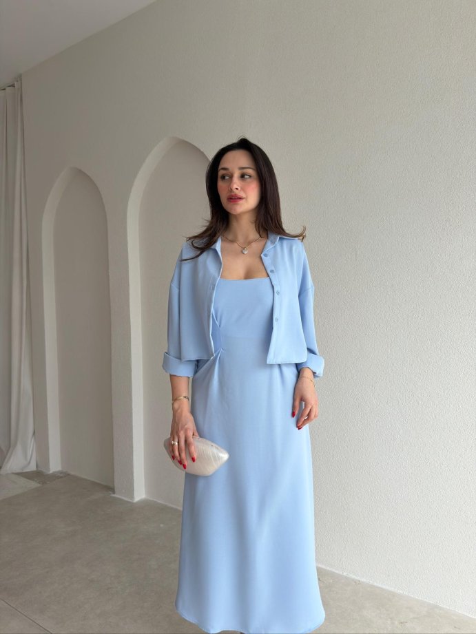 İNOX Midi Elbise & Gömlek Takım 5492 - Bebe Mavi