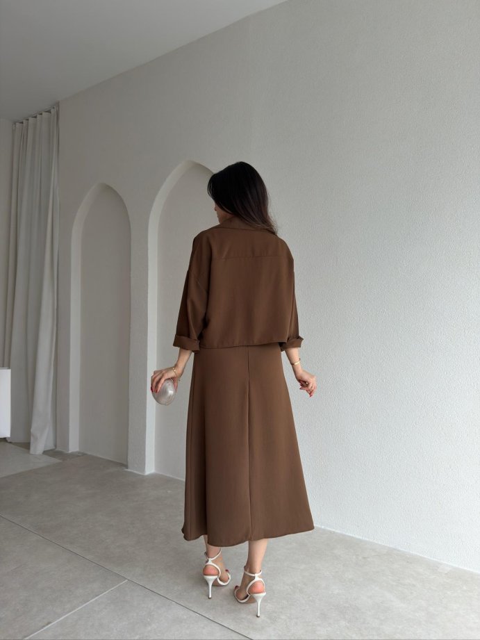 İNOX Midi Elbise & Gömlek Takım 5492 - Kahverengi