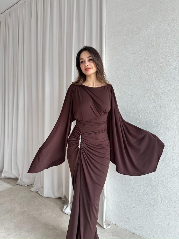 ISABEL Maxi Elbise 8755 - Acı Kahve