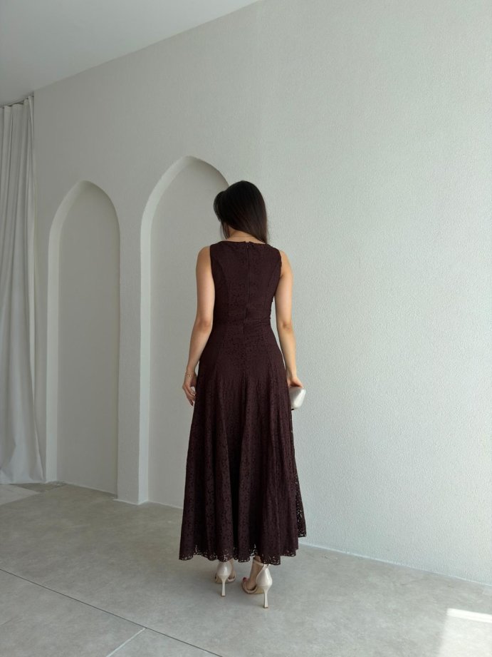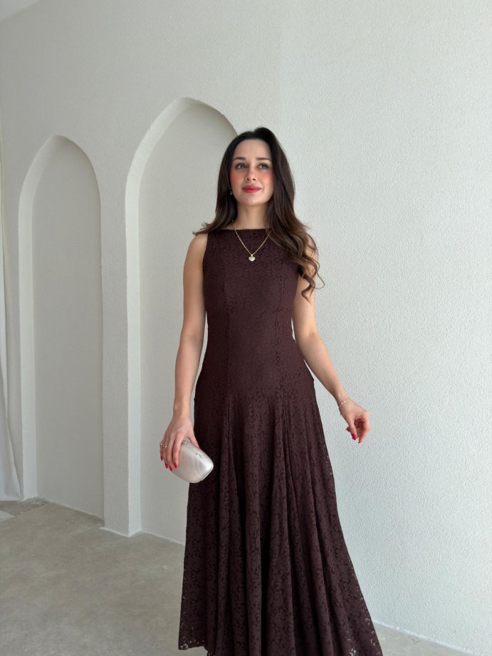 İVORY Dantelli Midi Elbise 7456 - Acı Kahve