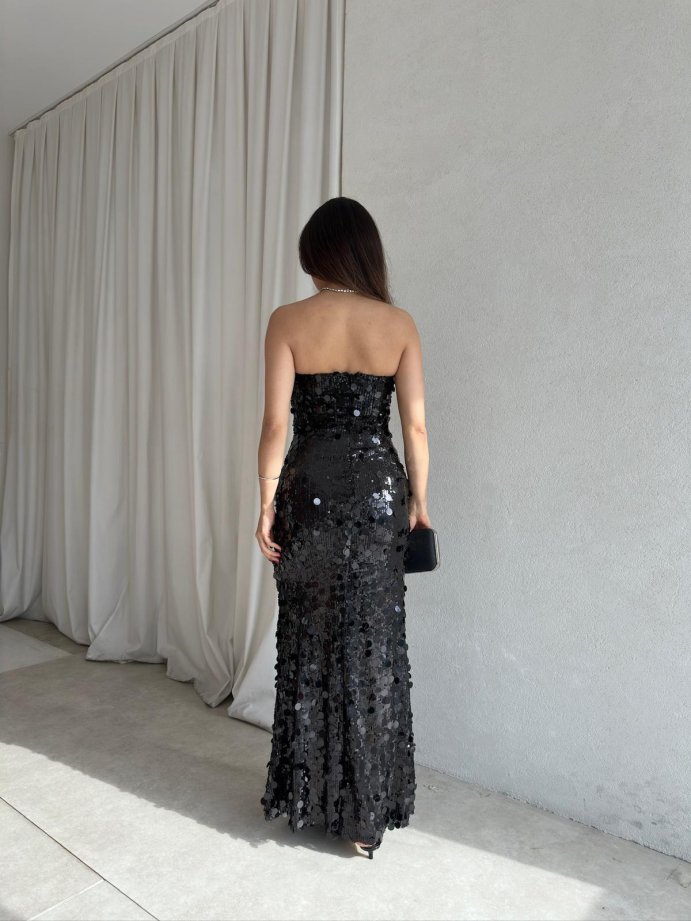 JADORE Payetli Maxi Elbise 8679 - Siyah