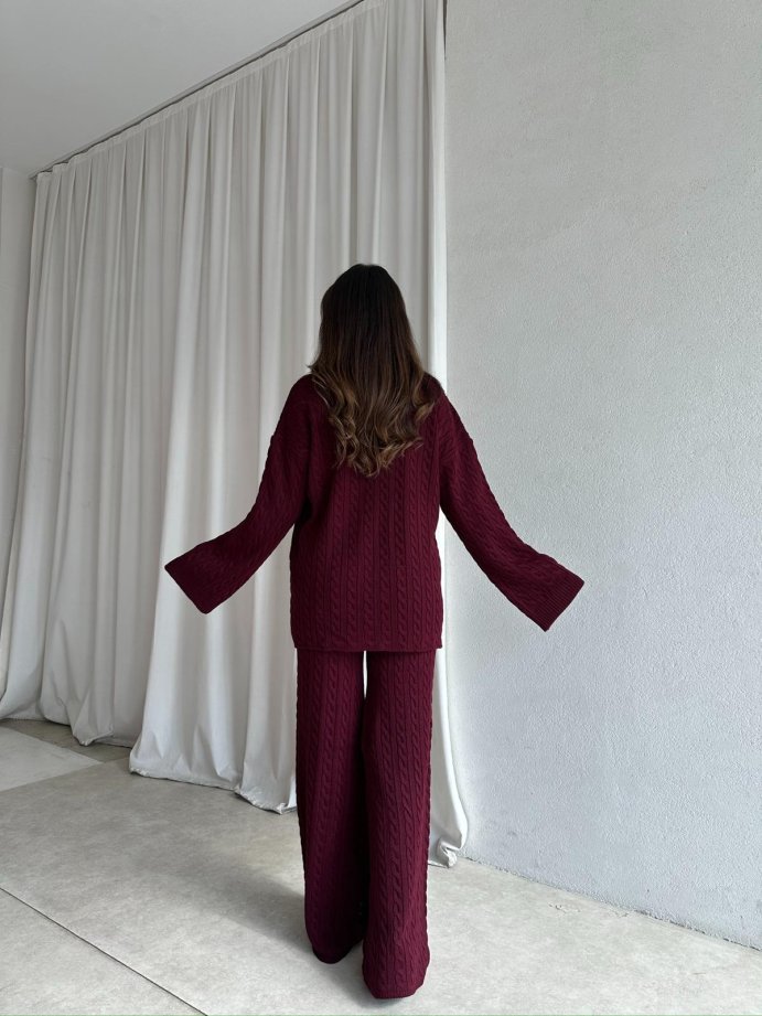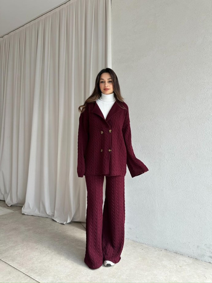 CANDİS Triko Fularlı Takım 8512 - Kahverengi