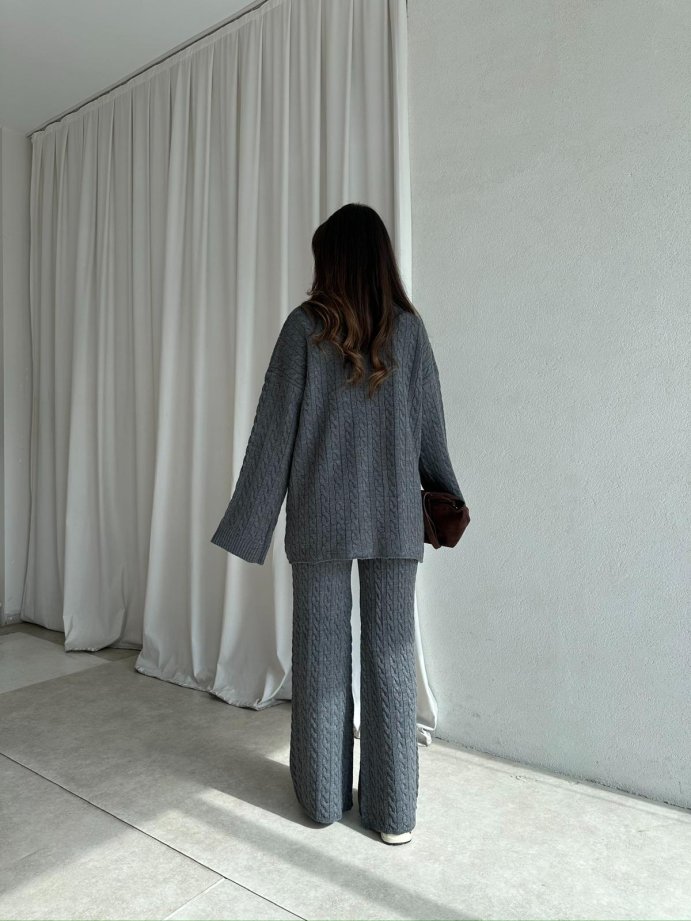 CANDİS Triko Fularlı Takım 8512 - Kahverengi