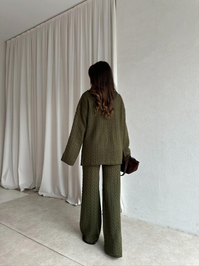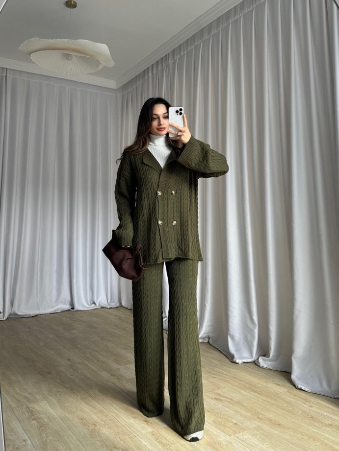 CANDİS Triko Fularlı Takım 8512 - Kahverengi