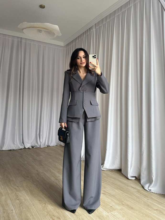 Takım üstü kuşak detayı 28 cm uzunluğunda ve ceplidir.