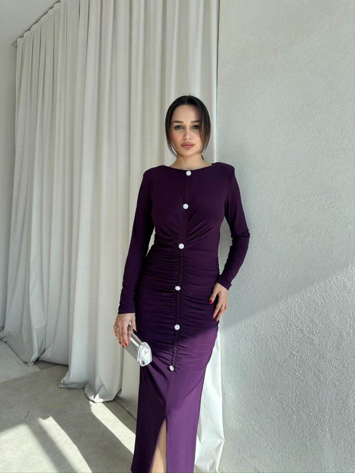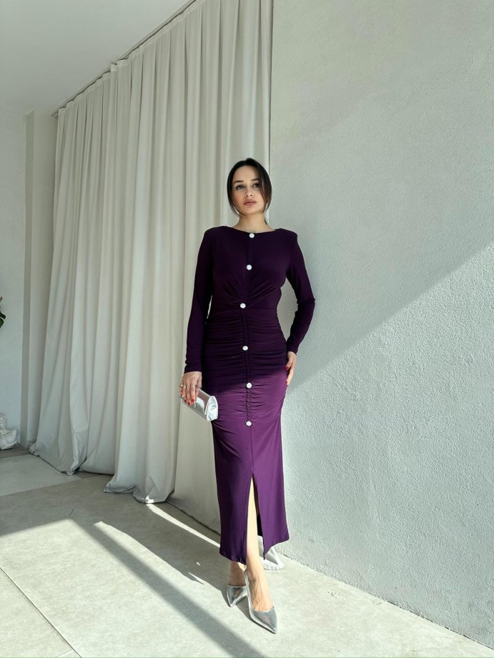 • JAYDEN Maxi Elbise tam kalıplıdır.