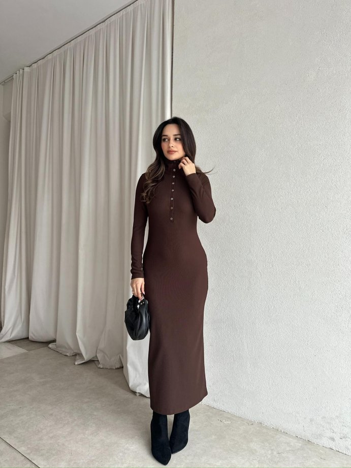 JERF Midi Elbise 8782 - Acı Kahve