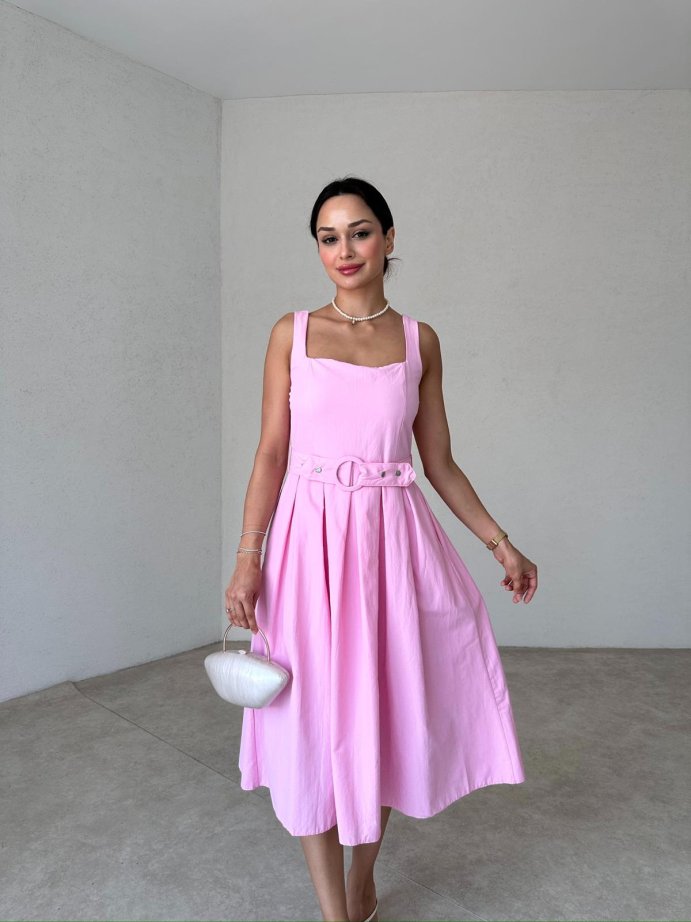 JODEN Midi Elbise 8758 - Pembe