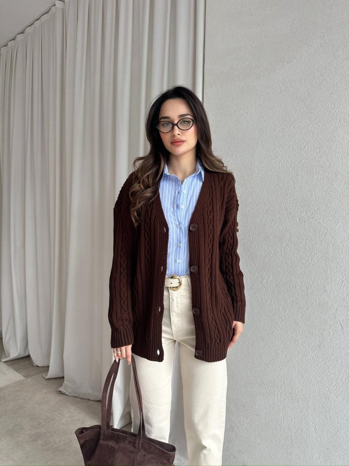 Hırka omuzdan aşağı 74 cm uzunluğundadır.