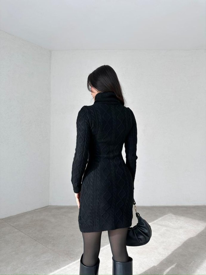 Kabartma Desenli Mini CARROL Elbise 6755 - Siyah