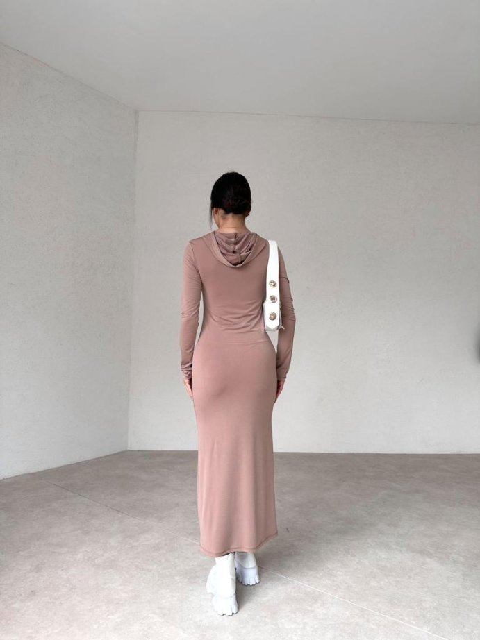 Kapüşonlu Midi FEORE Elbise 9233 - Vizon