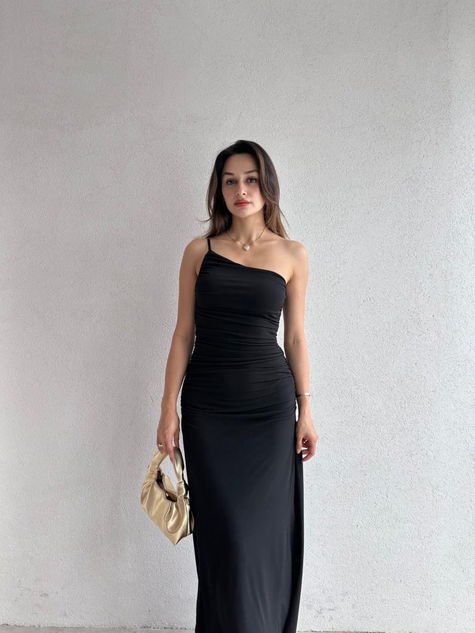 • Elbisenin sol omzu açıktır.