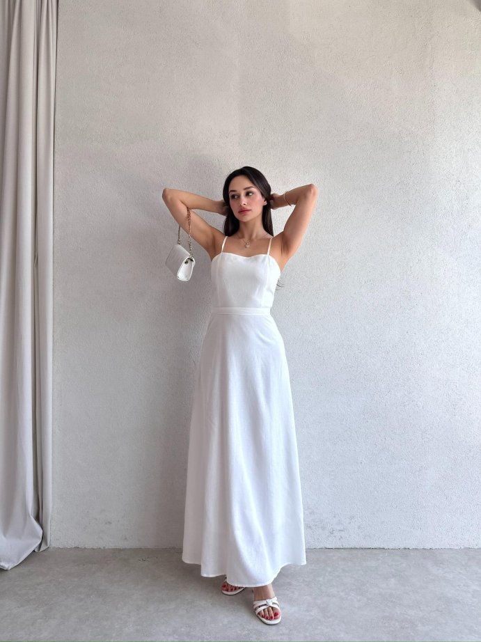 LAMBORN Maxi Elbise 9690 - Beyaz