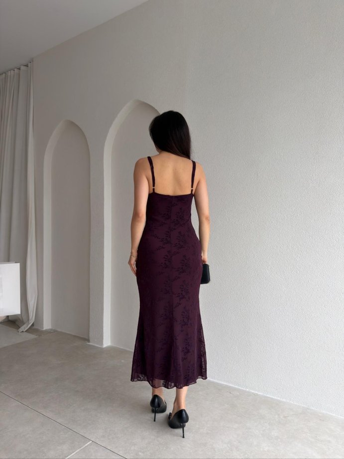 LANDES Midi Elbise 9030 - Mürdüm