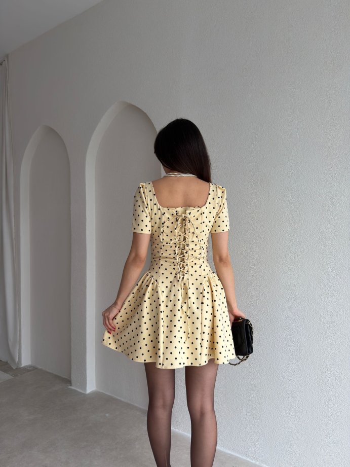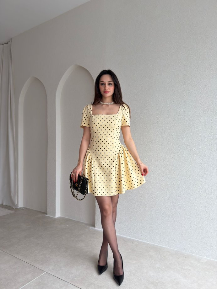 LESTER Puantiyeli Mini Elbise 2984 - Sarı