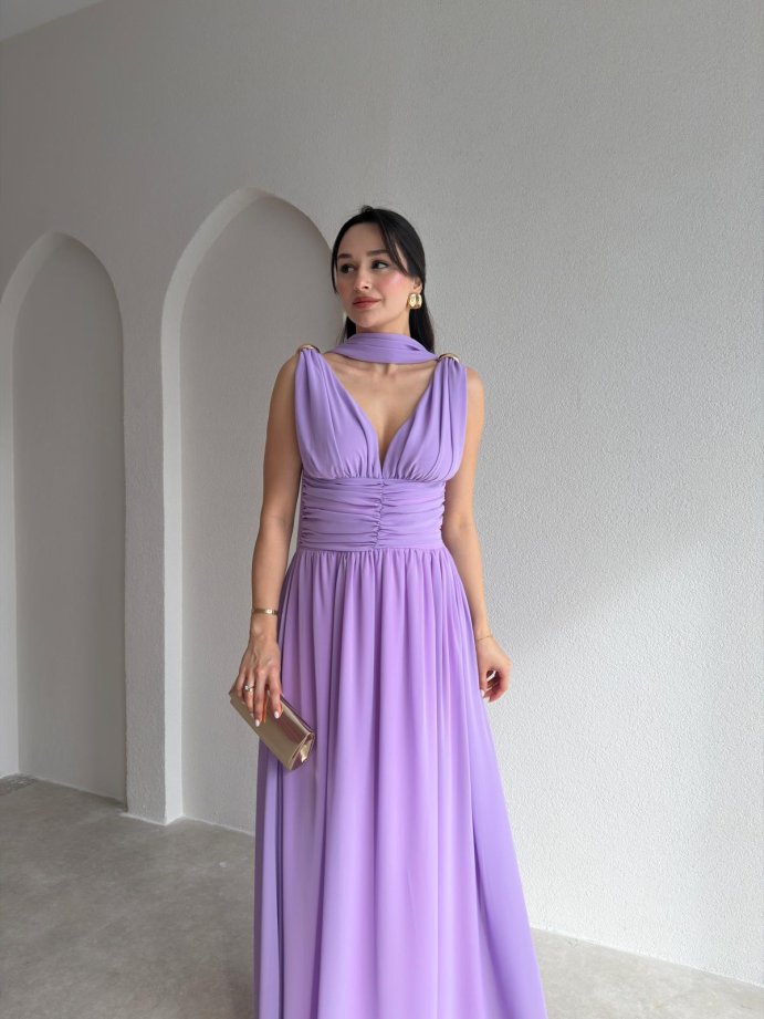 LEVANTE Şallı Maxi Elbise 8997 - Lila