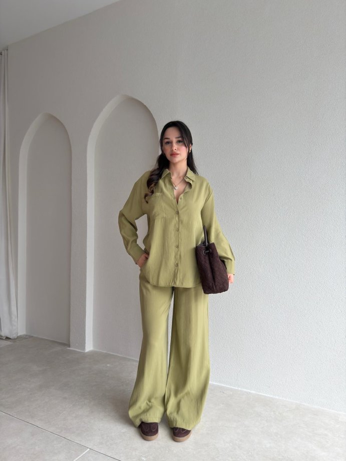 Takım bel lastikli ve bağcıklıdır.