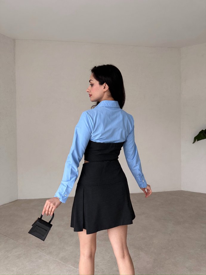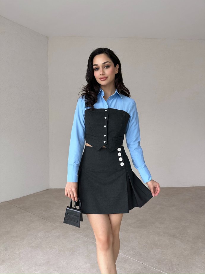 Takım üstü gömlekle birleşiktir, dikili formdadır.