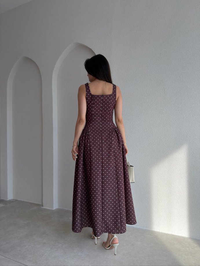 LİVA Puantiyeli Midi Elbise 8980 - Acı Kahve