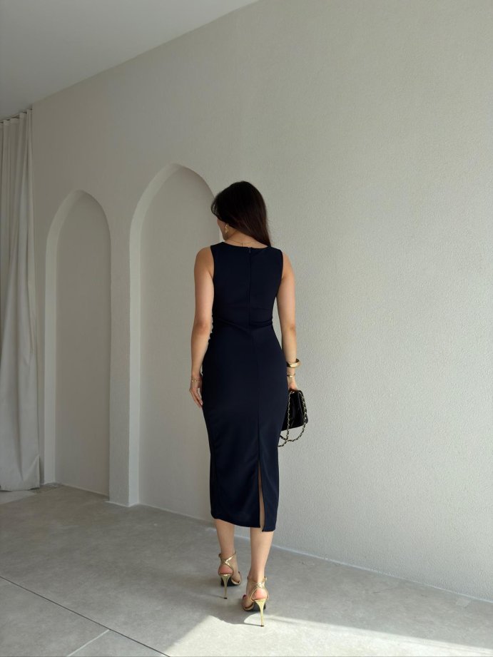 LONDON Midi Elbise 9842 - Lacivert