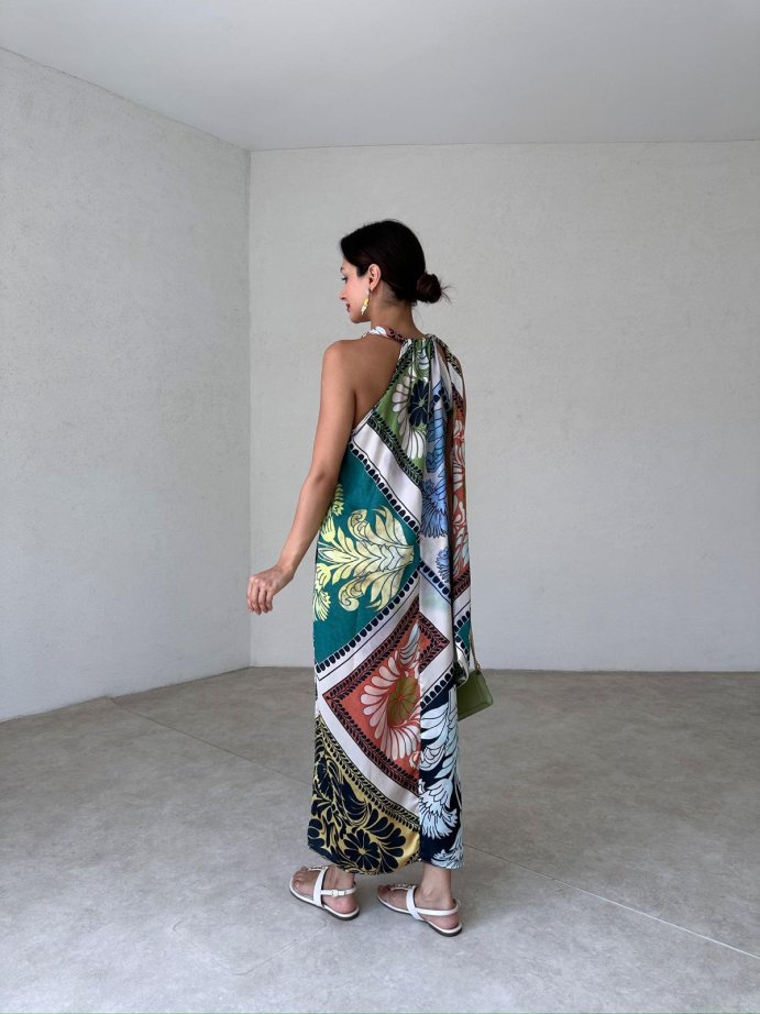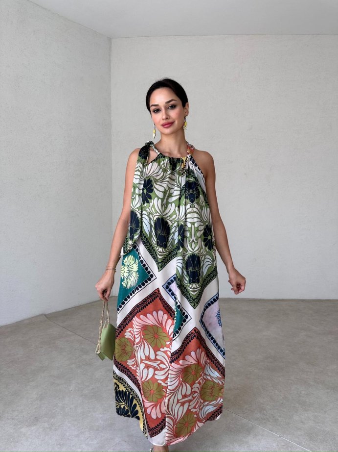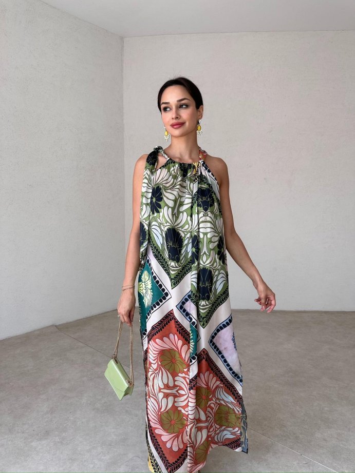 LOVİSA Maxi Elbise tam kalıplıdır.