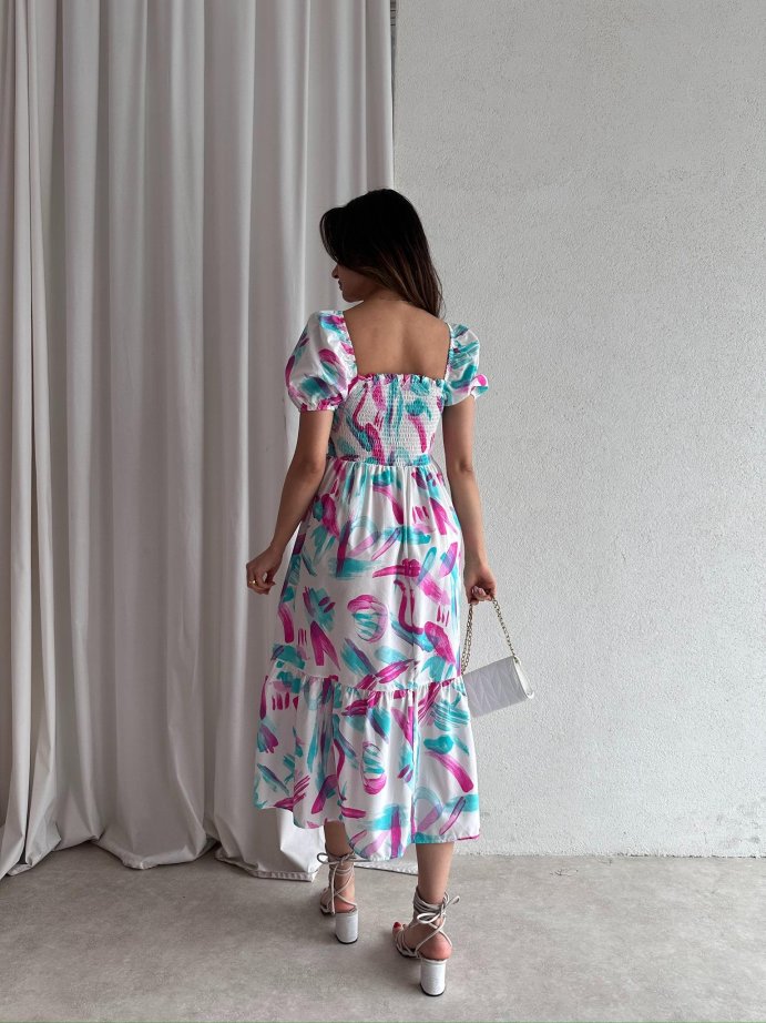 Dekolte Detaylı Midi THALES Elbise 5500 - Taş