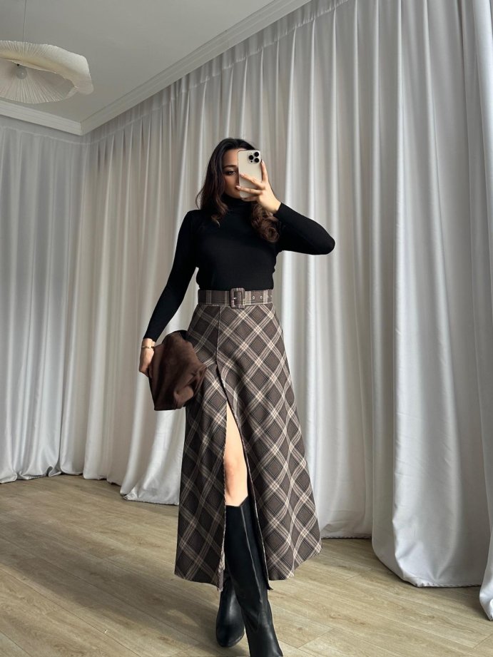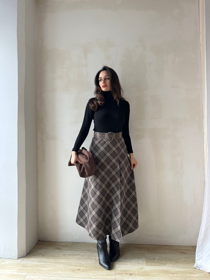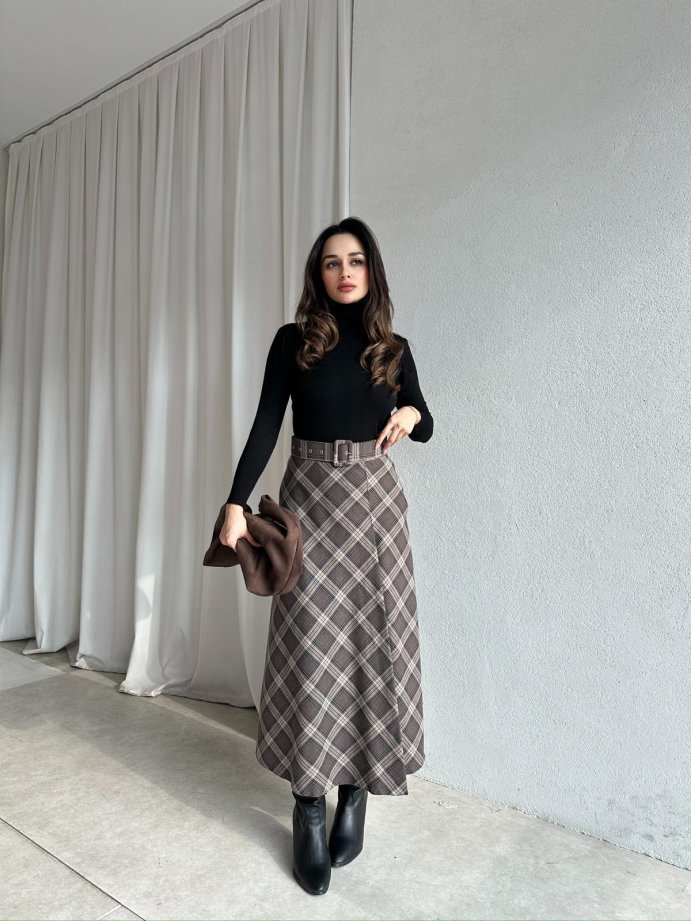 LUNA Desenli Midi Etek 8688 - Kahverengi