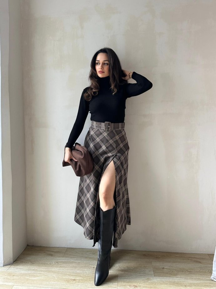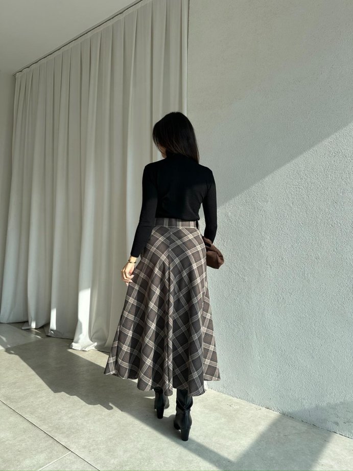 LUNA Desenli Midi Etek tam kalıplıdır.