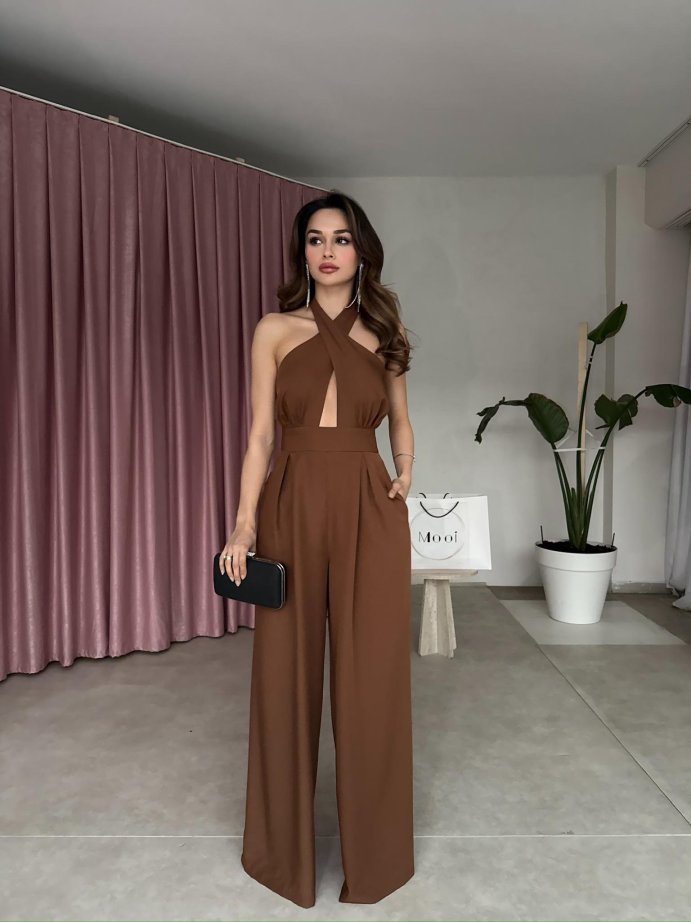 Dekolte Detaylı Midi THALES Elbise 5500 - Taş