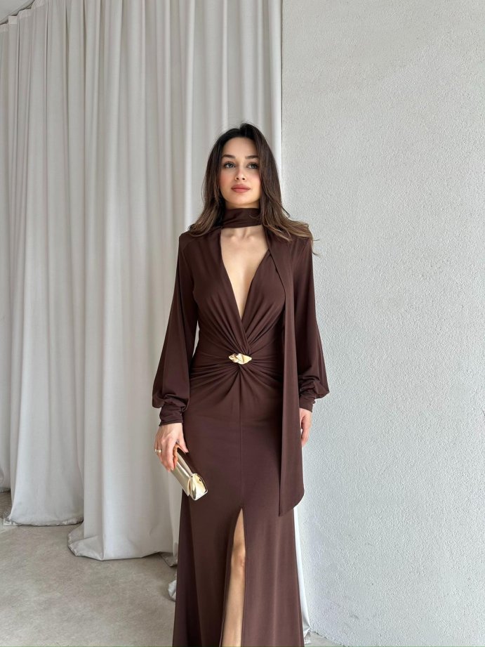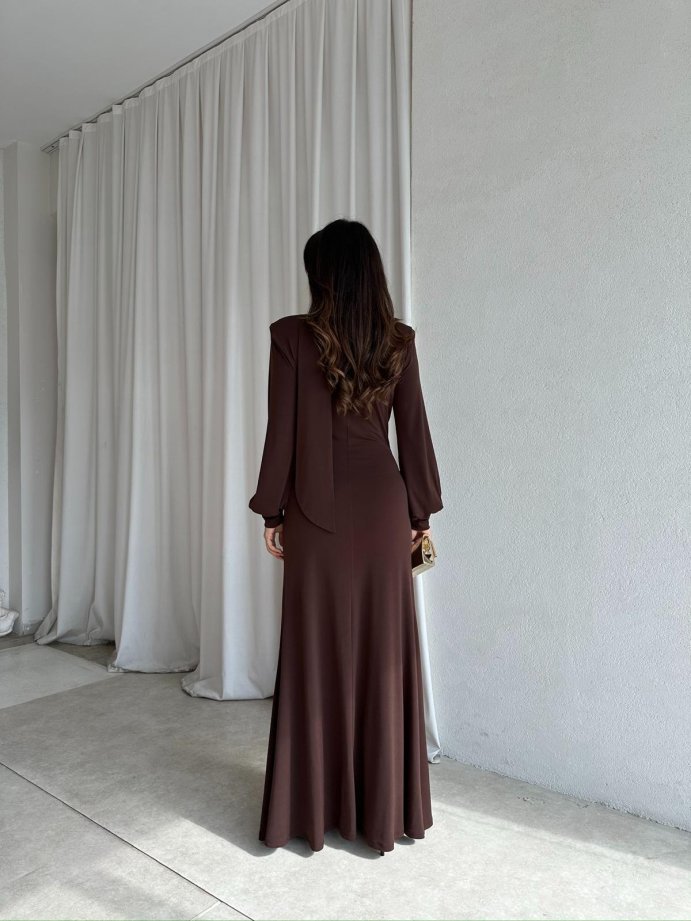 ISABEL Maxi Elbise 8755 - Acı Kahve