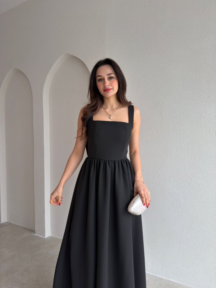 LYDİA Fiyonk Detaylı Maxi Elbise 4818 - Siyah