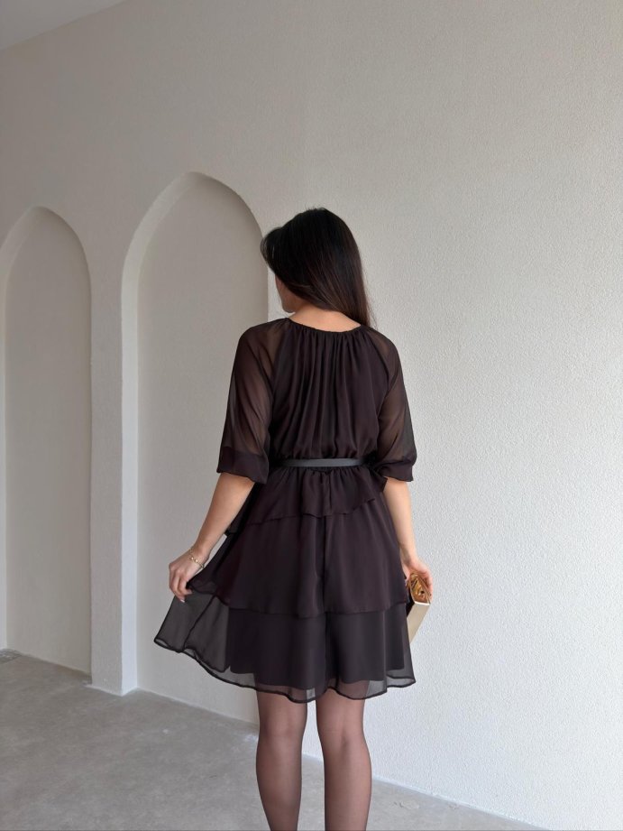 TRACY Dantelli Mini Elbise 9843 - Acı Kahve