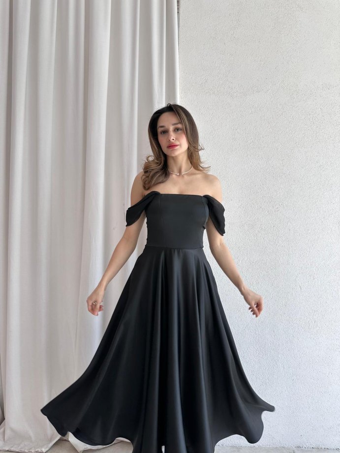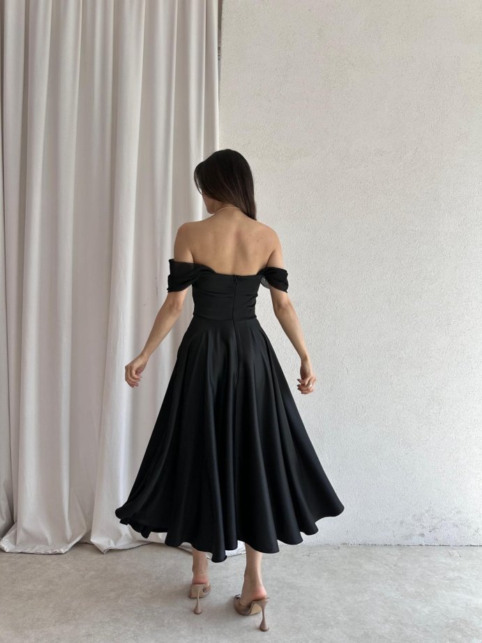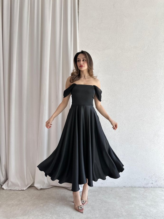 ZİLEY Gül Detaylı Midi Elbise 8117 - Siyah