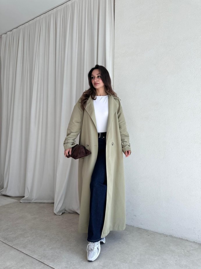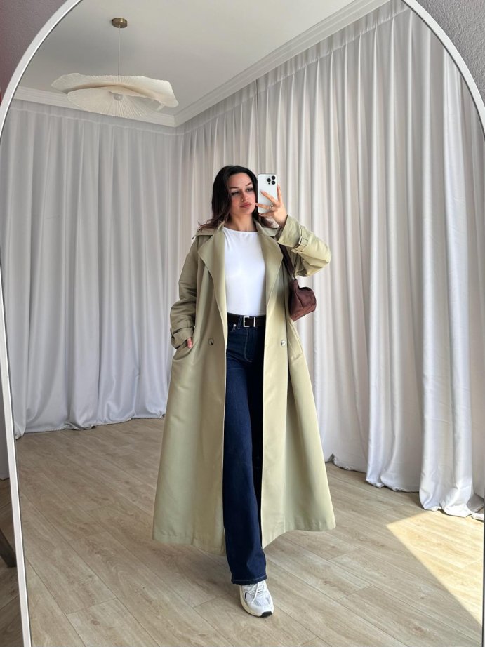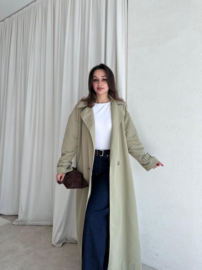Trençkot omuzdan aşağı 132 cm uzunluğundadır.