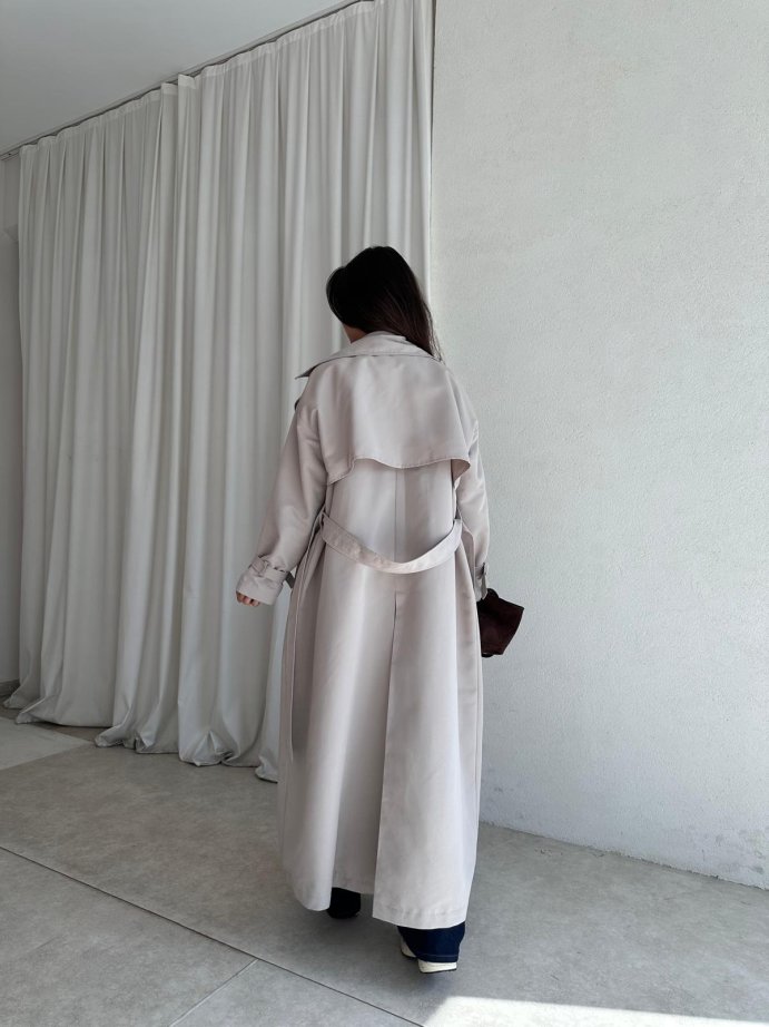 Trençkot omuzdan aşağı 132 cm uzunluğundadır.