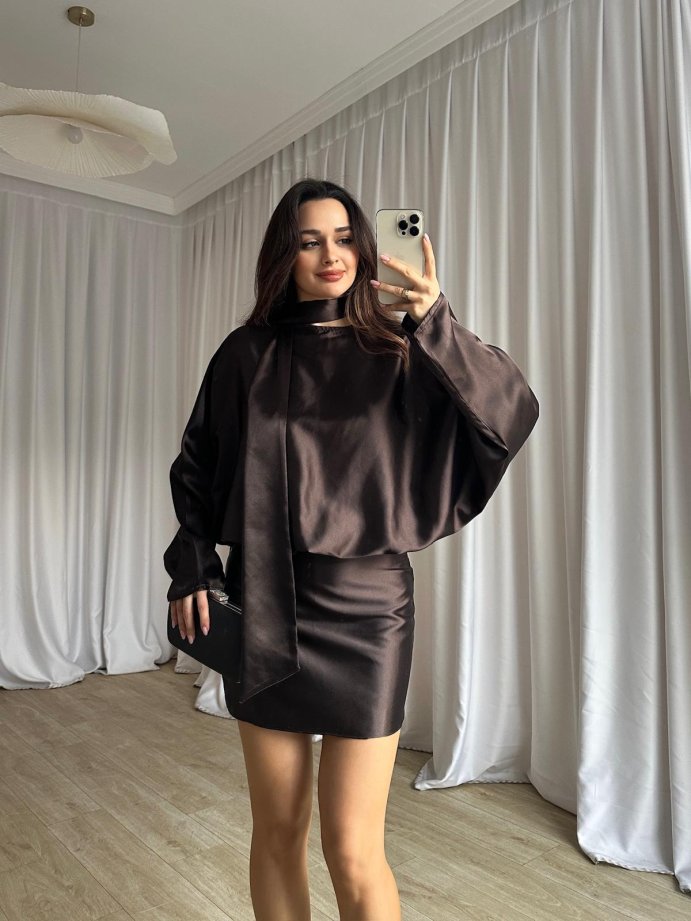 MAXİM Saten Mini Elbise 8737 - Acı Kahve