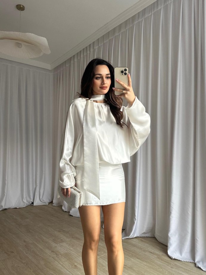 MAXİM Saten Mini Elbise 8737 - Beyaz