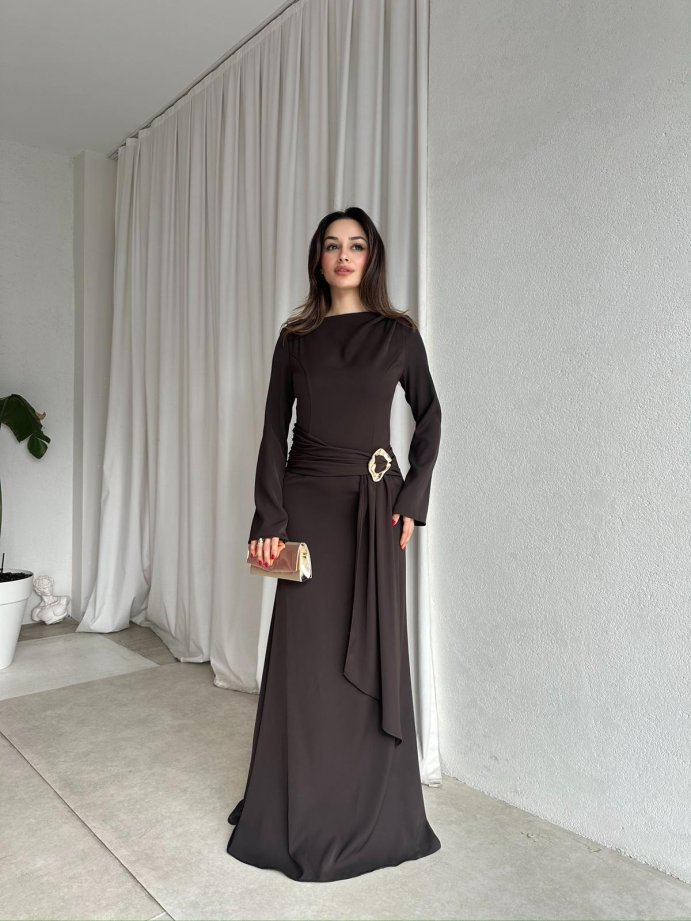 MAYBE Maxi Elbise 8654 - Acı Kahve