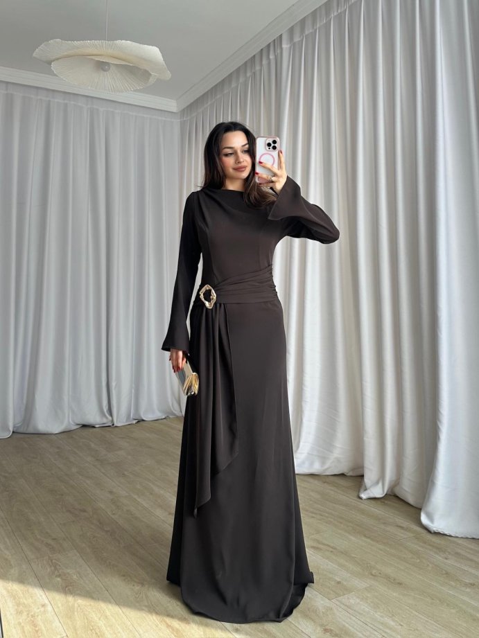 GODWİN Maxi Elbise 6493 - Acı Kahve