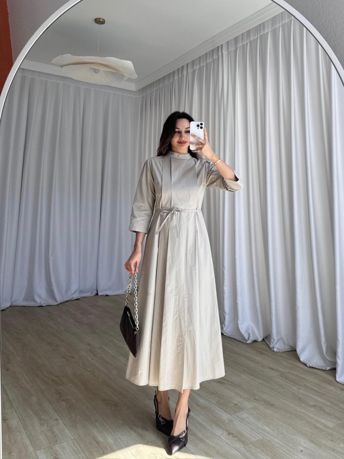 PUBLİC Maxi Elbise 9512 - Acı Kahve