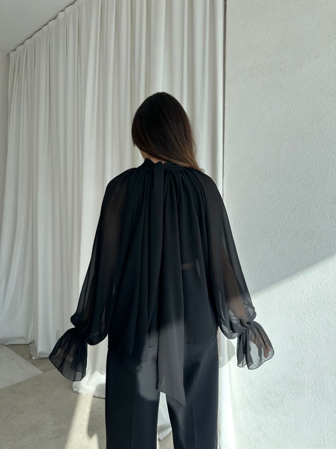 GOSSİP Dökümlü Bluz 8326 - Siyah
