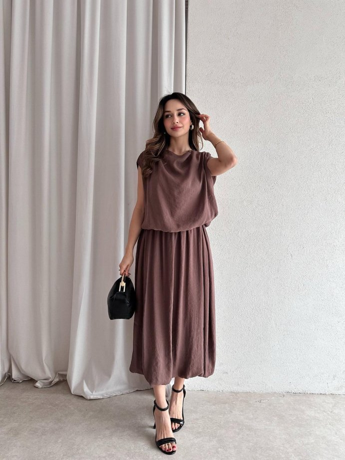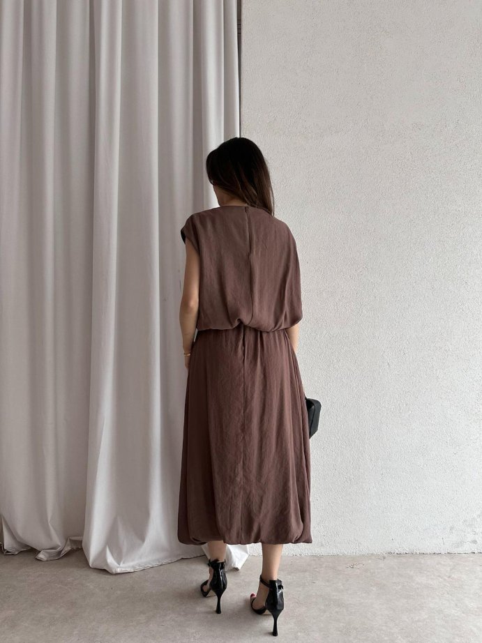 Dekolte Detaylı Midi THALES Elbise 5500 - Taş