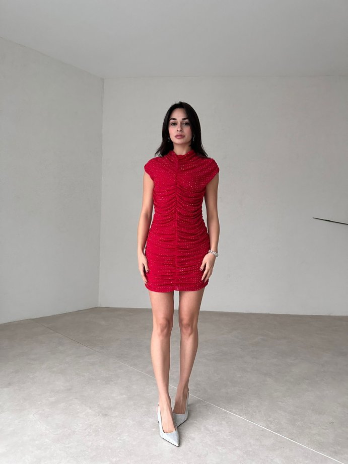 Mini Puantiyeli WACLAW Elbise 4366 - Kırmızı