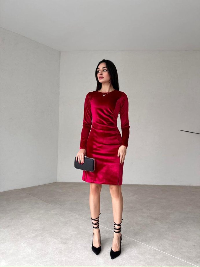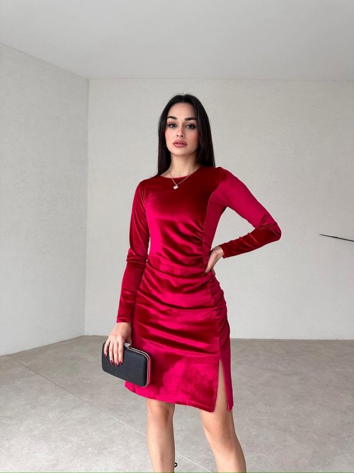 Mini Yırtmaçlı Kadife FREDRİC Elbise tam kalıplıdır.