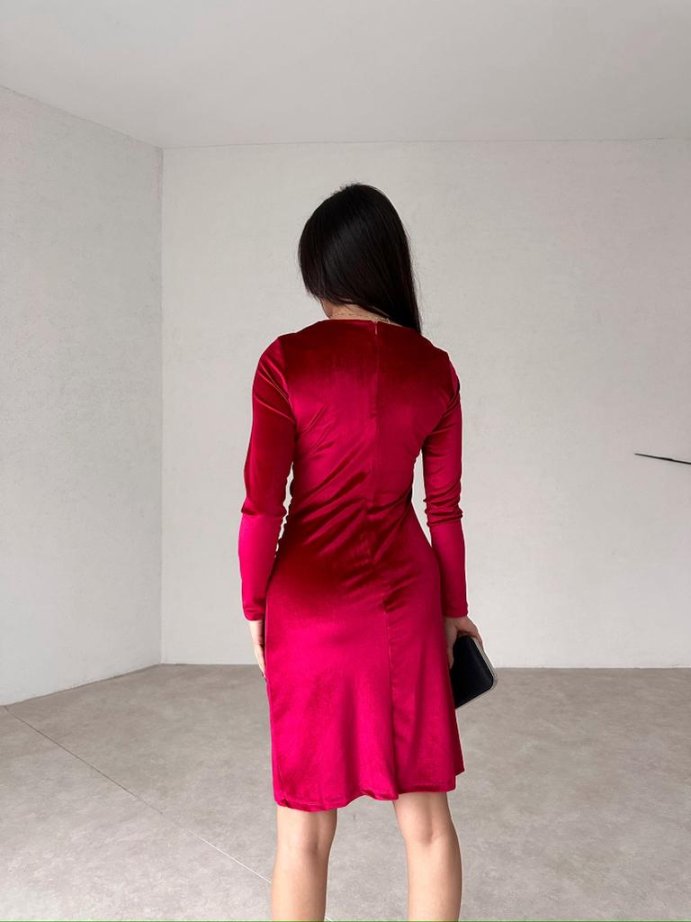 Mini Yırtmaçlı Kadife FREDRİC Elbise 2321 - Kırmızı